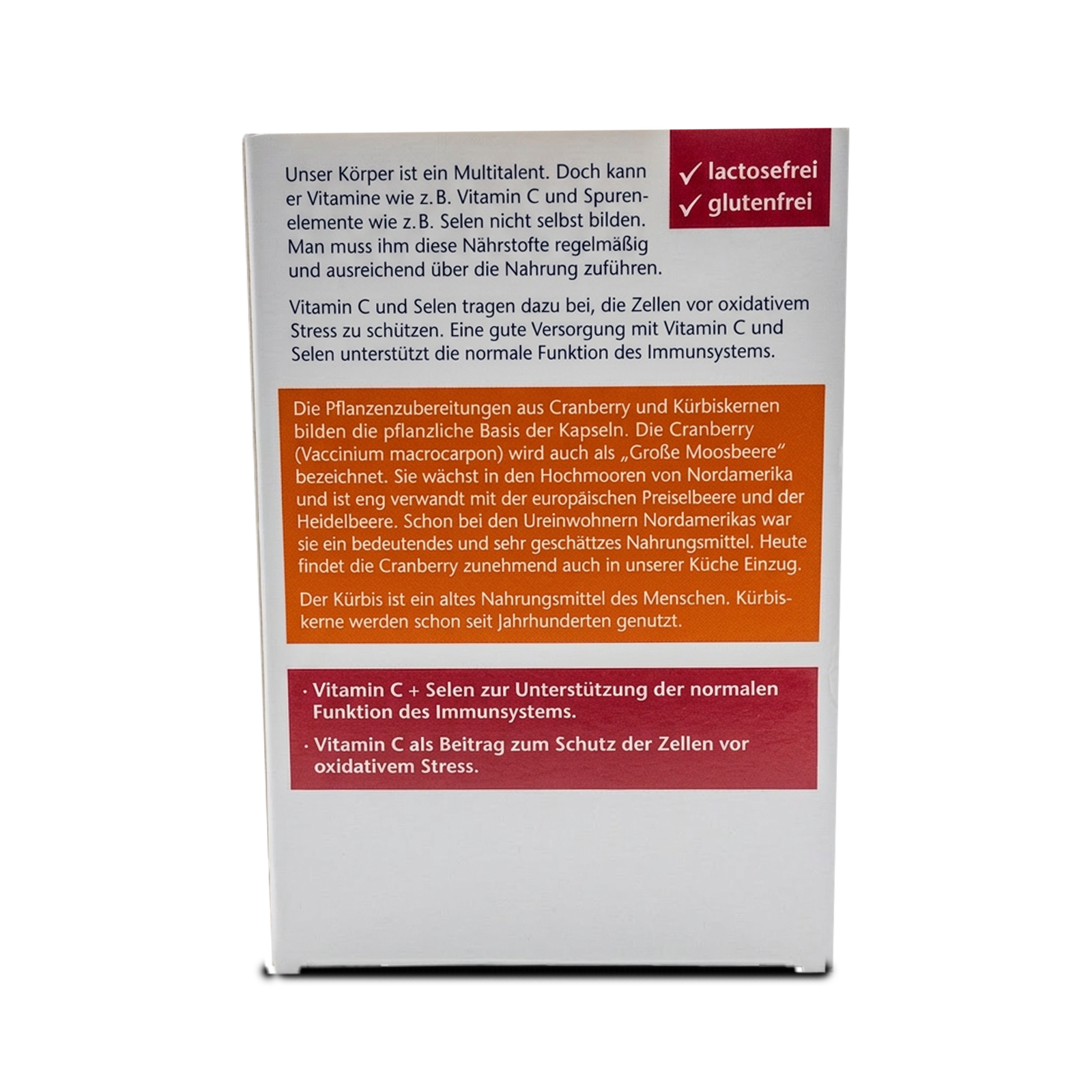 - Vitamin C & selenium support the normal function of the immune system & help protect cells from oxidative stress.