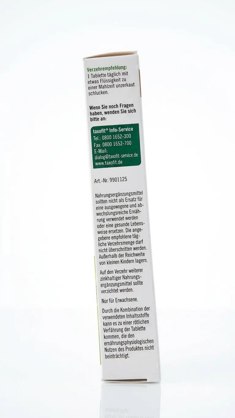 - Taxofit Zinc + Histidine + Vitamin C + Selenium tablets.